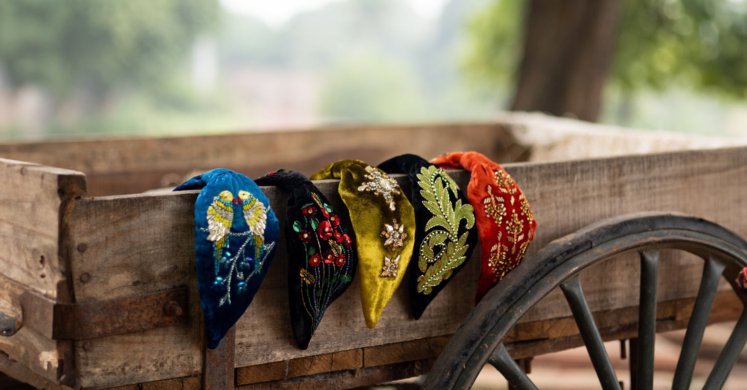 At NamJosh each hairband is hand-beaded by our skilled artisans with embroidery techniques that are passed down from generation to generation.