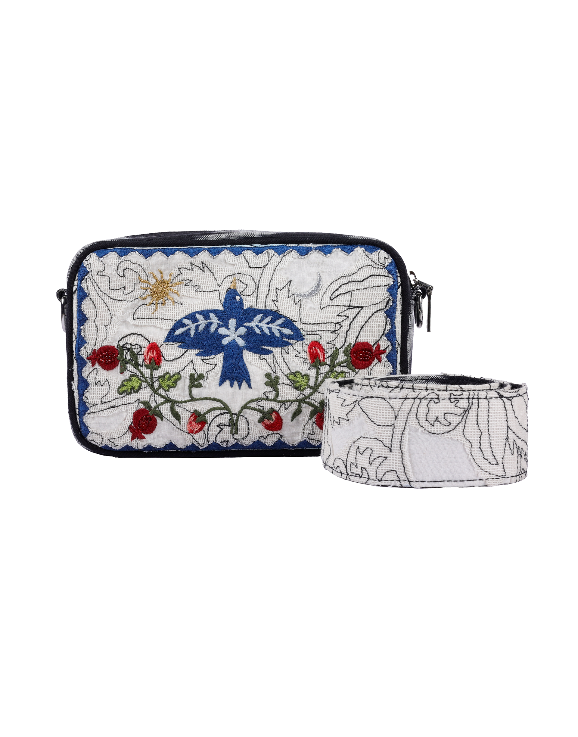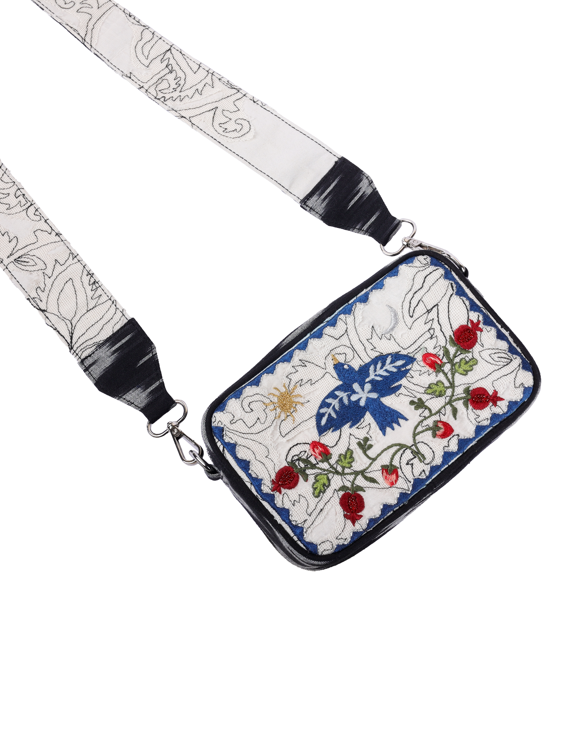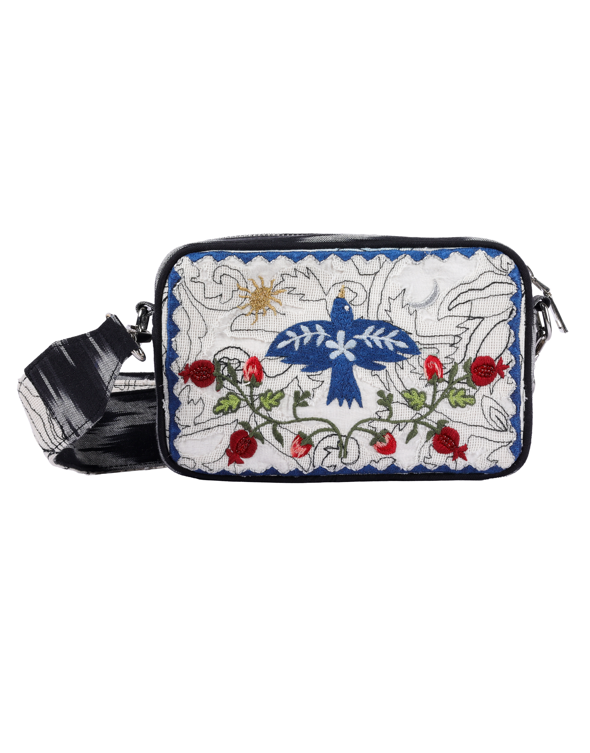 - This stylish box bag features intricate embroidery adorned with vibrant patterns, making it a standout accessory.