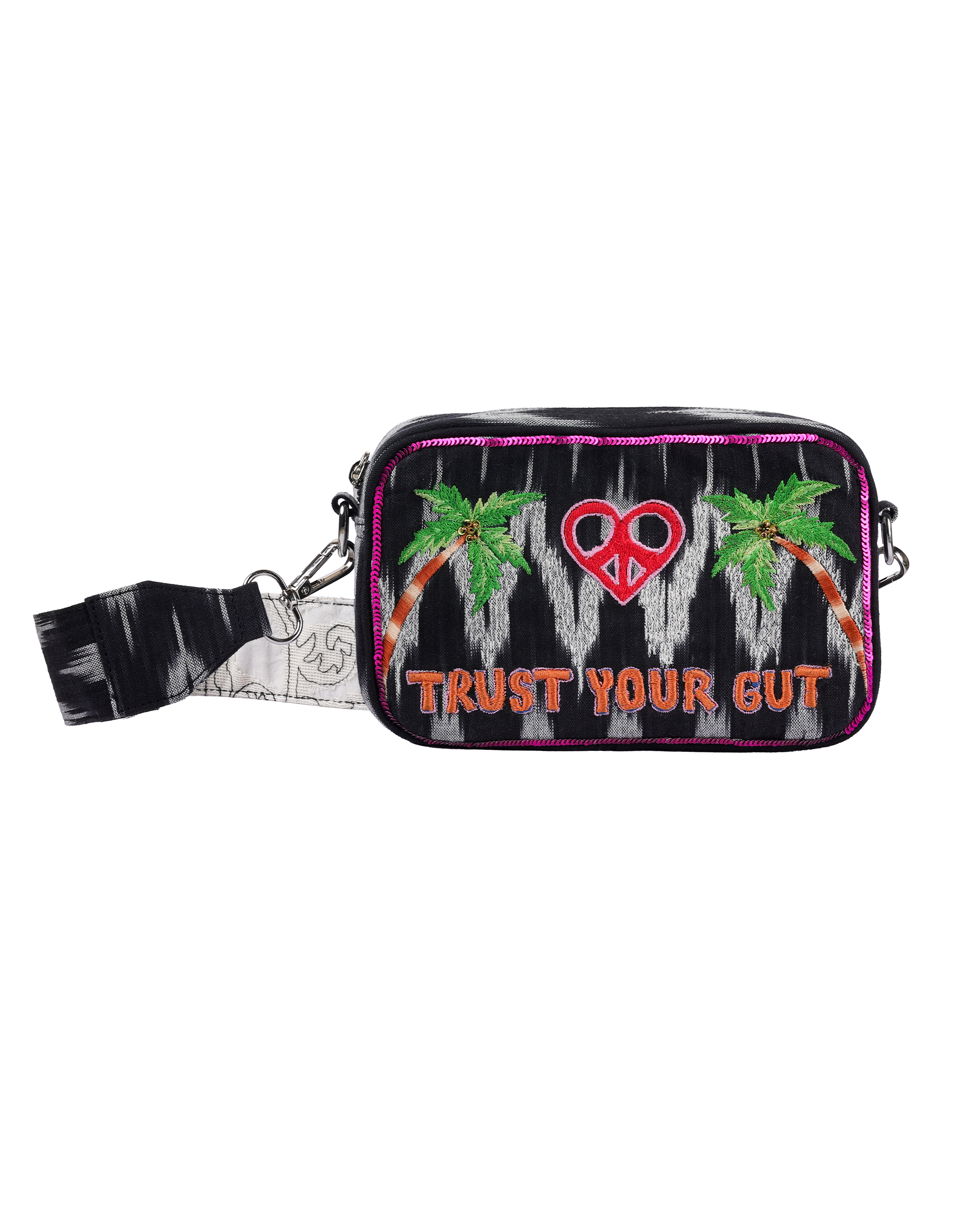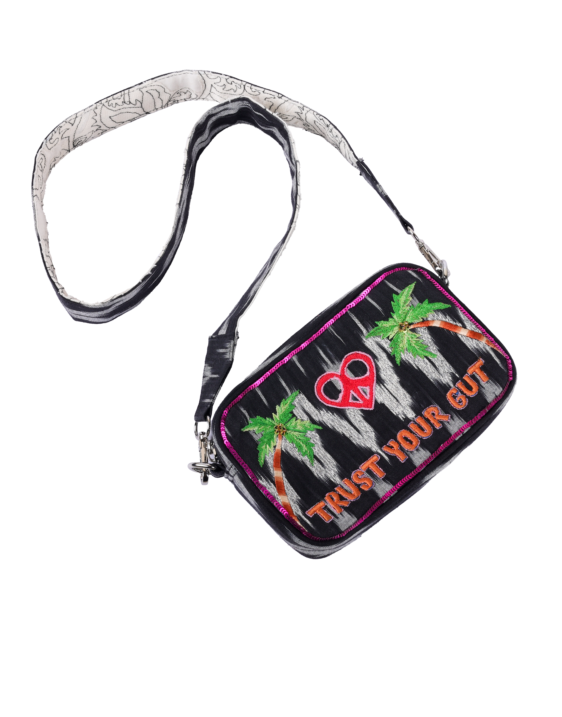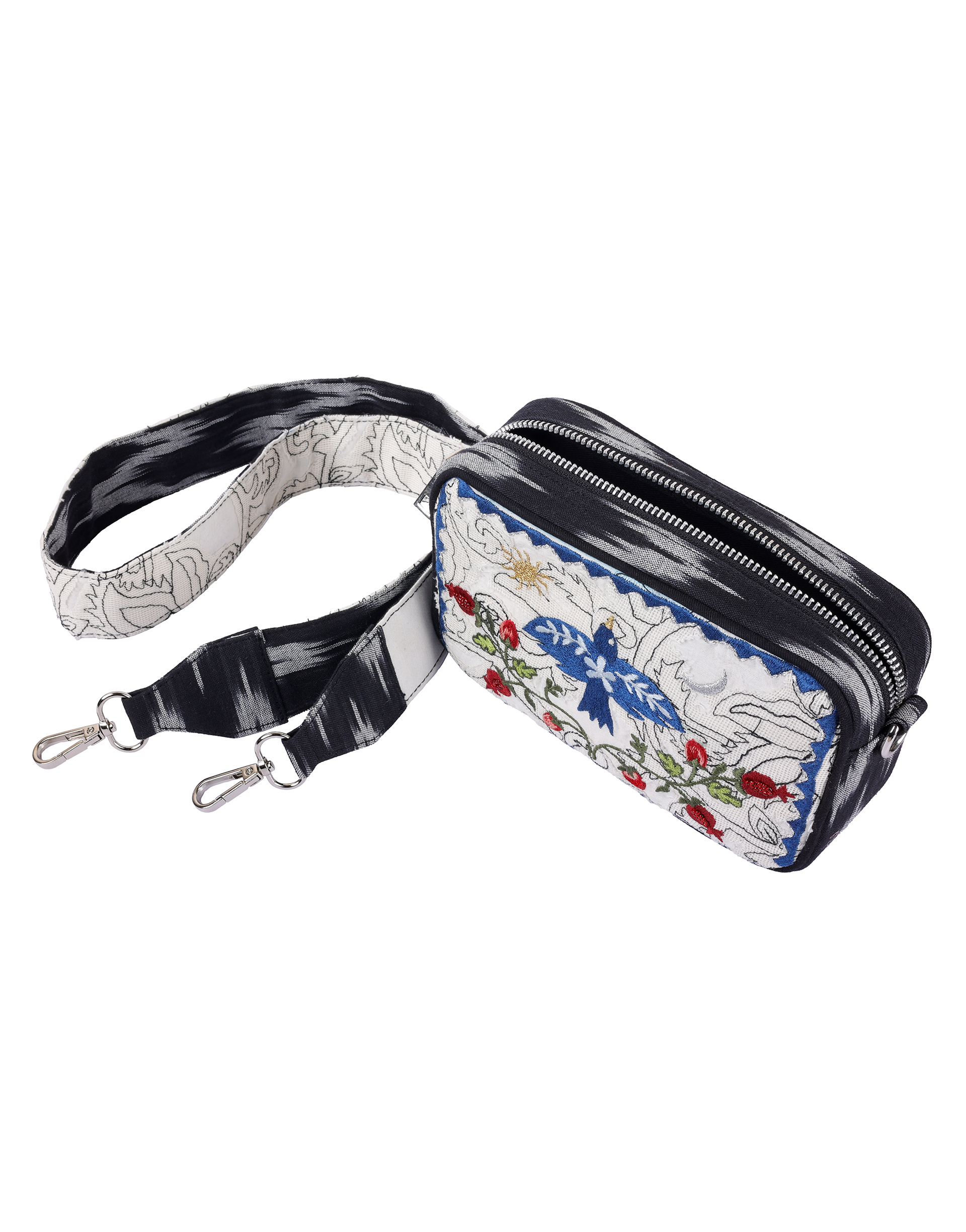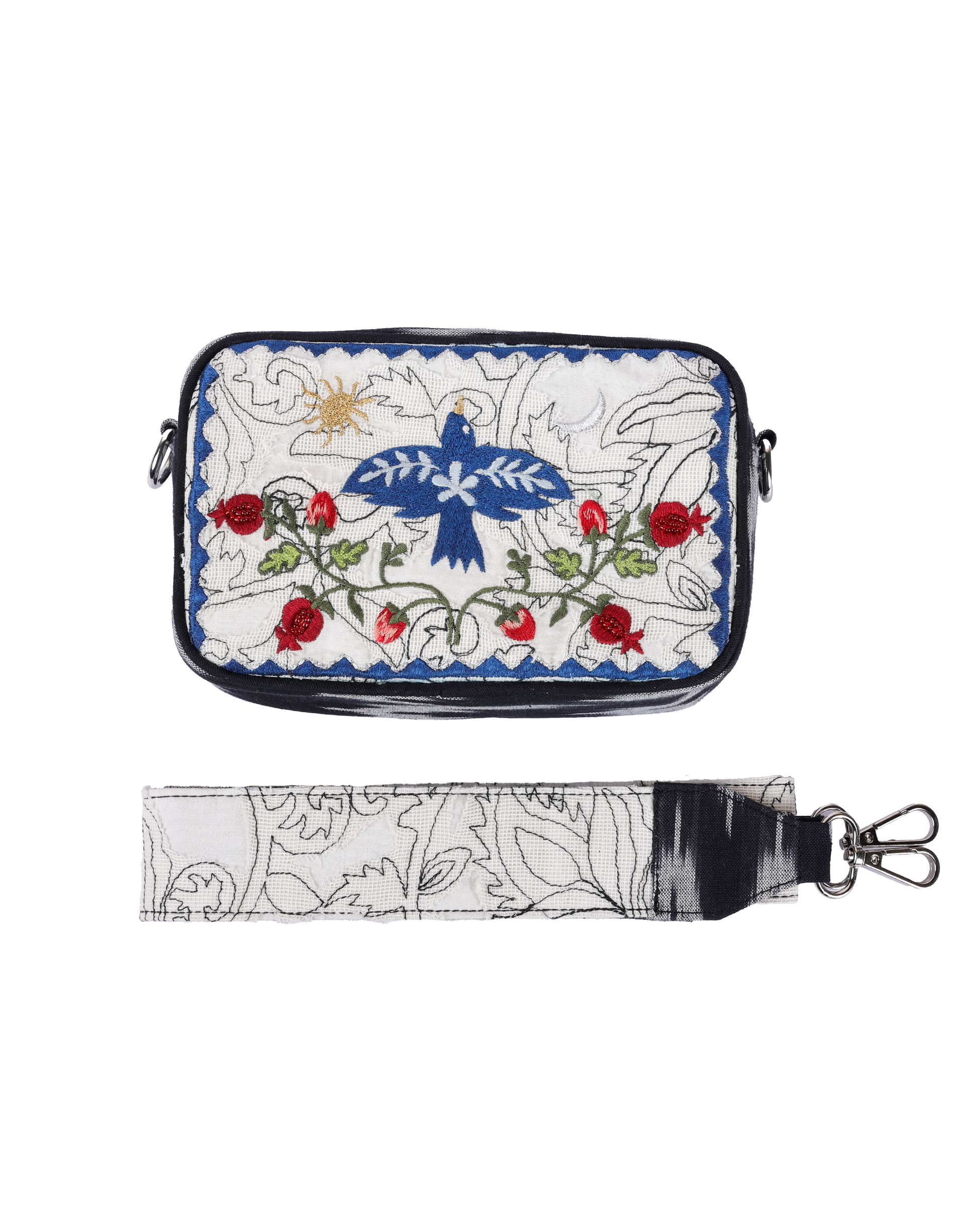 - This stylish box bag features intricate embroidery adorned with vibrant patterns, making it a standout accessory.