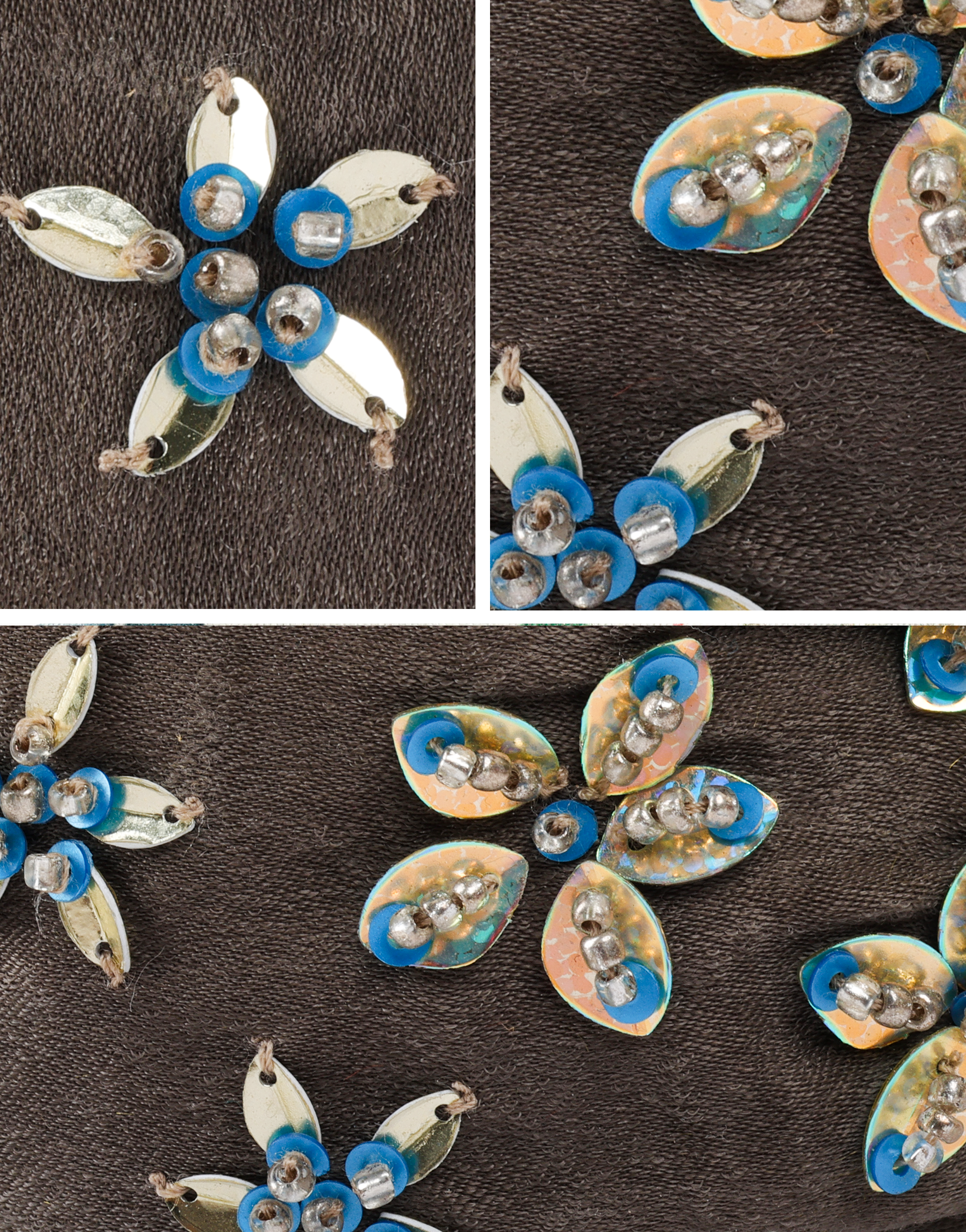 Grey headband with blue & silver mini flower embroidery. Looks super chic for ethnic or fusion looks! Perfect for adding a touch of elegance.