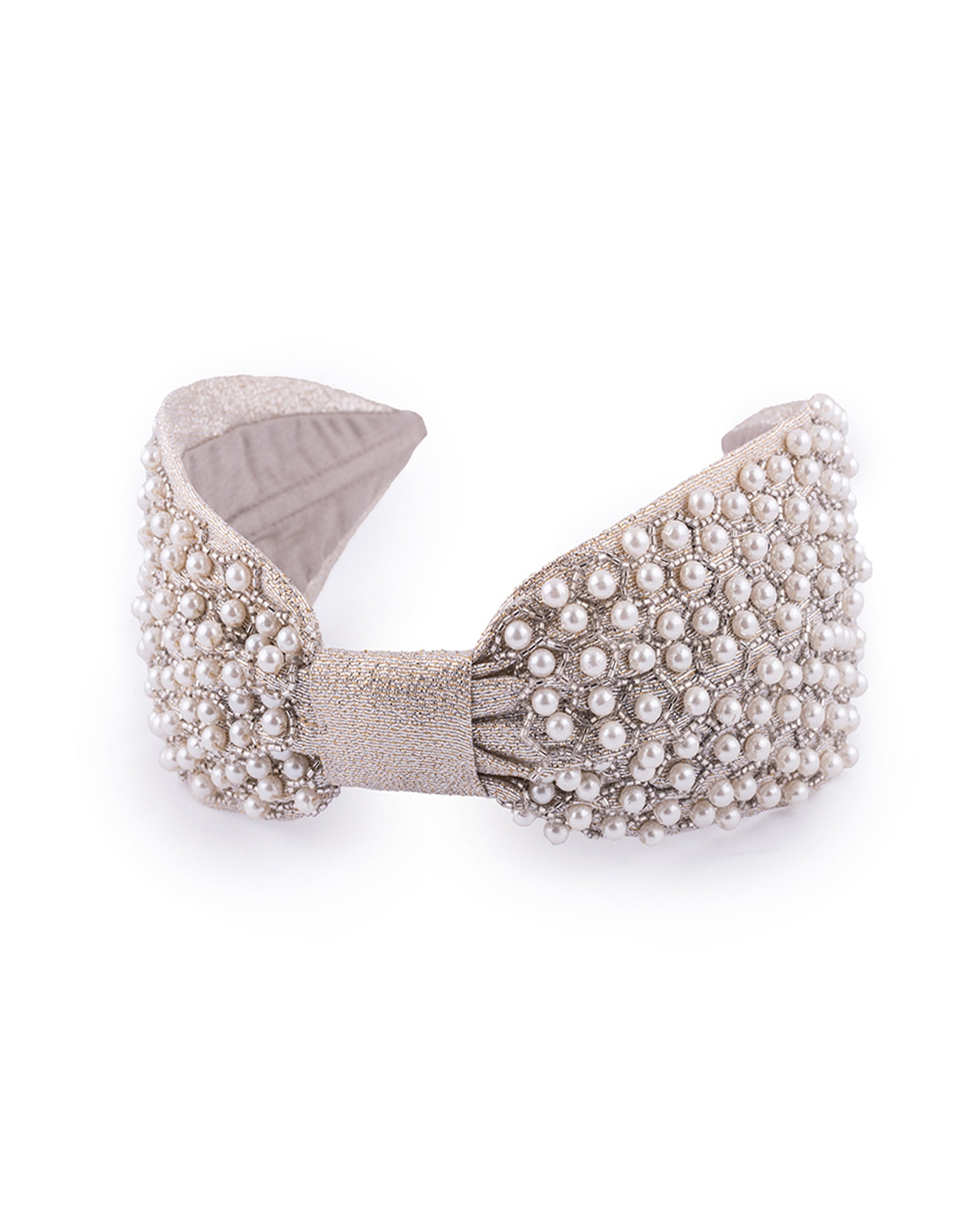 Perfect for weeding and evenings, silver bugle beads a plays off with silver base, creating modern geometric pattern.