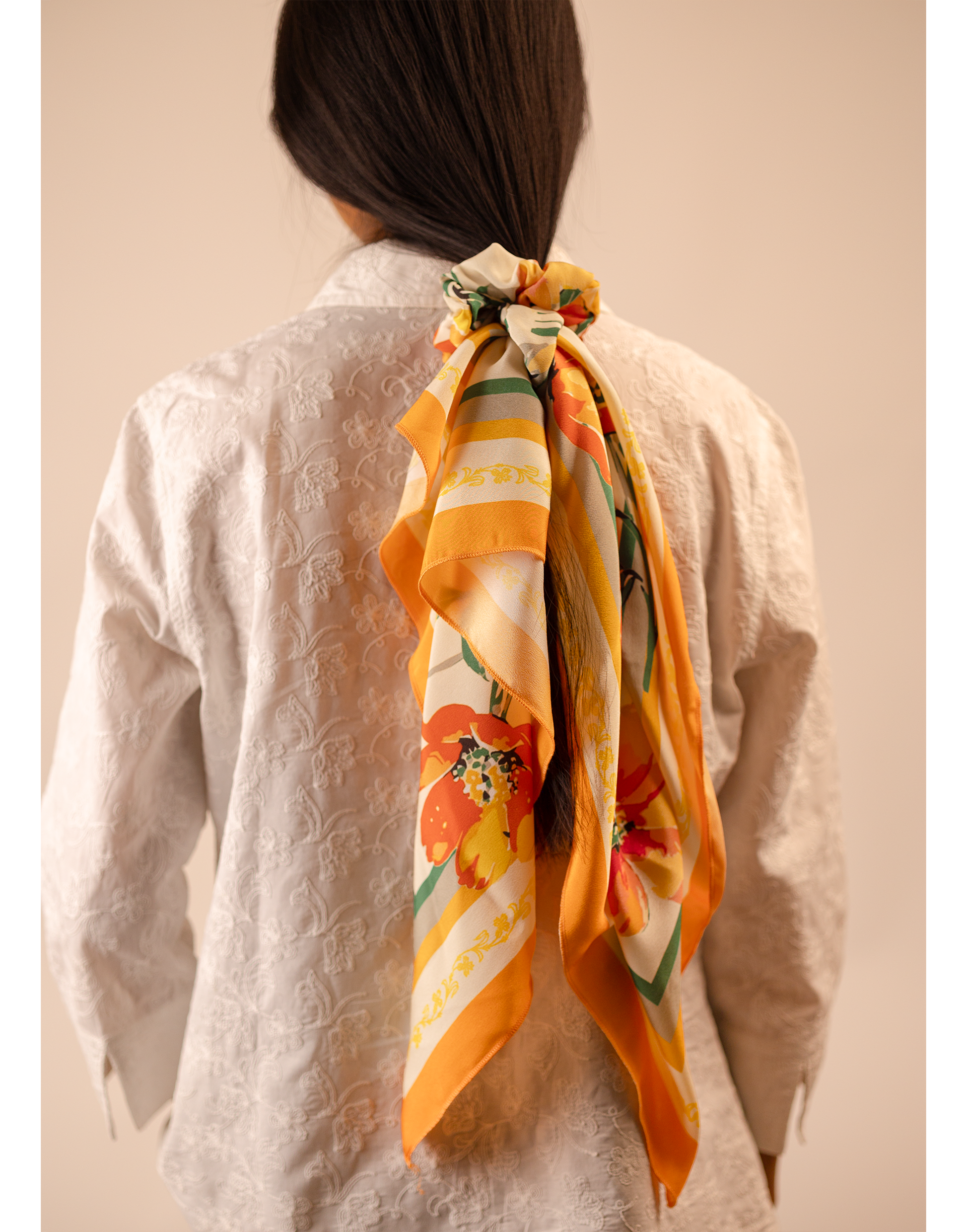 - Add a pop of color to your wardrobe with our Mango Scarf! With a vibrant mango color and playful flower print, this scarf will have you looking fresh and stylish. Perfect for any season, this scarf will make a statement wherever you go.